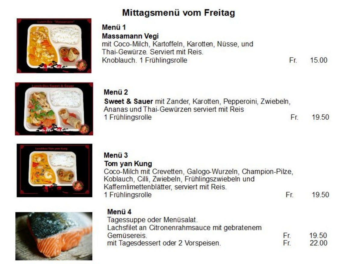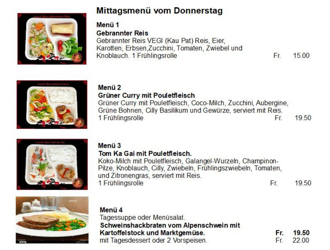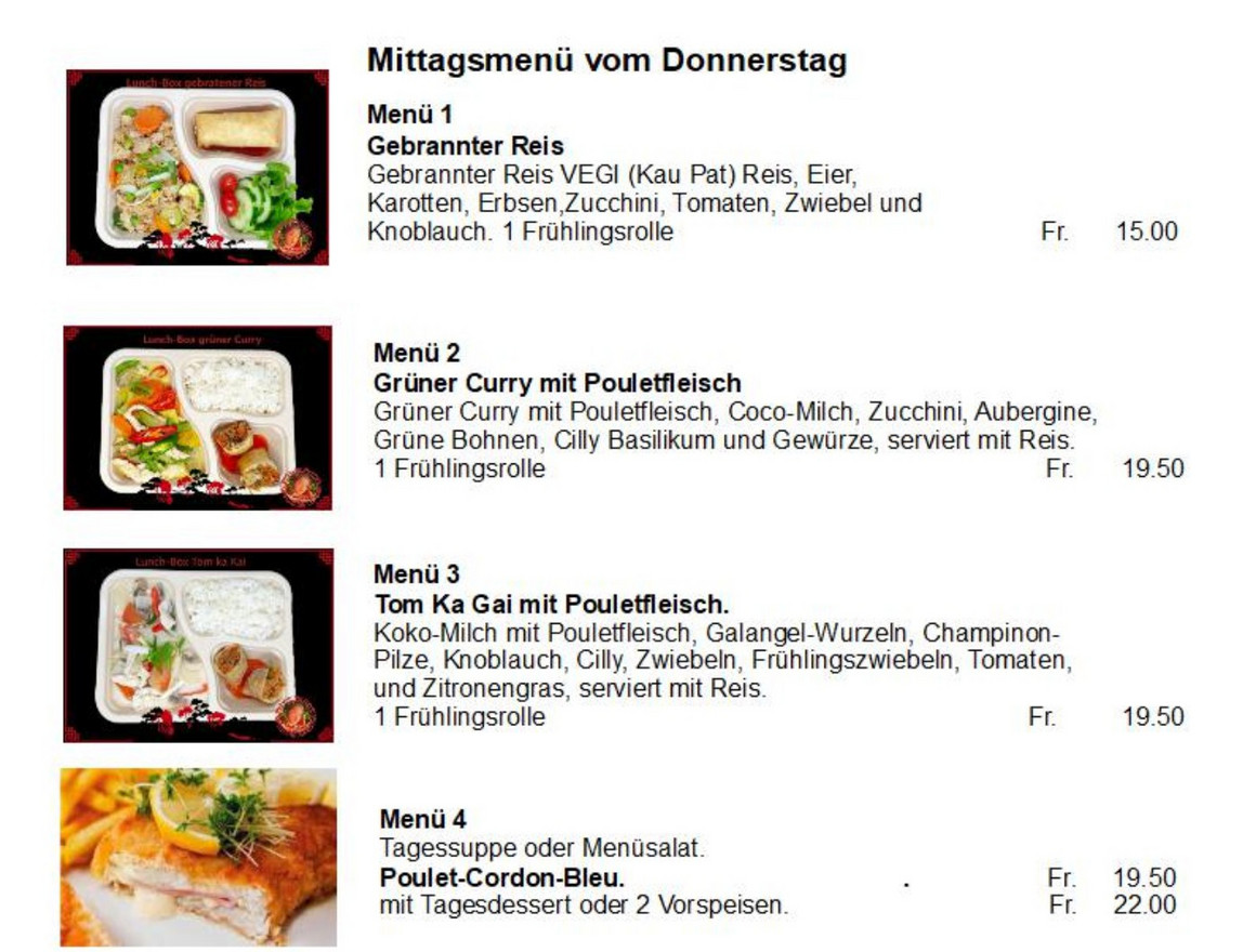 Der Schlüssel zu unserem Erfolg ist einfach: Wir bieten hochwertige Gerichte, die stets dem Gaumen erfreuen. Wir sind stolz darauf, unseren Kunden schmackhafte und authentische Gerichte zu servieren. Thailändische- und CH- Küche.